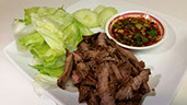 Grilled steak, sliced and served with spicy Thai dipping sauce and your choice of sticky or steamed rice