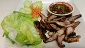 Grilled Pork Belly with spicy Thai dipping sauce and your choice of sticky or steamed rice.