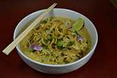 Broccoli and carrots sautéed in creamy coconut milk and peanut curry. (Rice noodles available upon request)