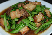 Crispy pork belly stir-fried in our house brown sauce.