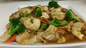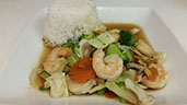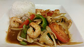 Shrimp, squid, and mussels, stir-fried with roasted chili paste, onions, basil leaf and bell peppers.