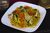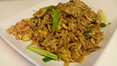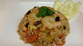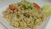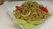 A special blend of fried rice with eggs, cashews, raisins, pineapple and onions stir-fried with yellow curry.
