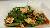 Green beans stir-fried in red curry and sweet basil.