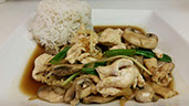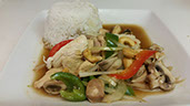 Fresh, sweet basil stir-fried with mushrooms, onions, bamboo shoots, and bell peppers.