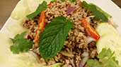Eggplants and sweet basil sautéed in our special Thai roasted chili paste.