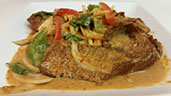 A special roasted Thai chili paste (Num Prik Pow) stir-fried with onions, tomatoes and bell peppers.